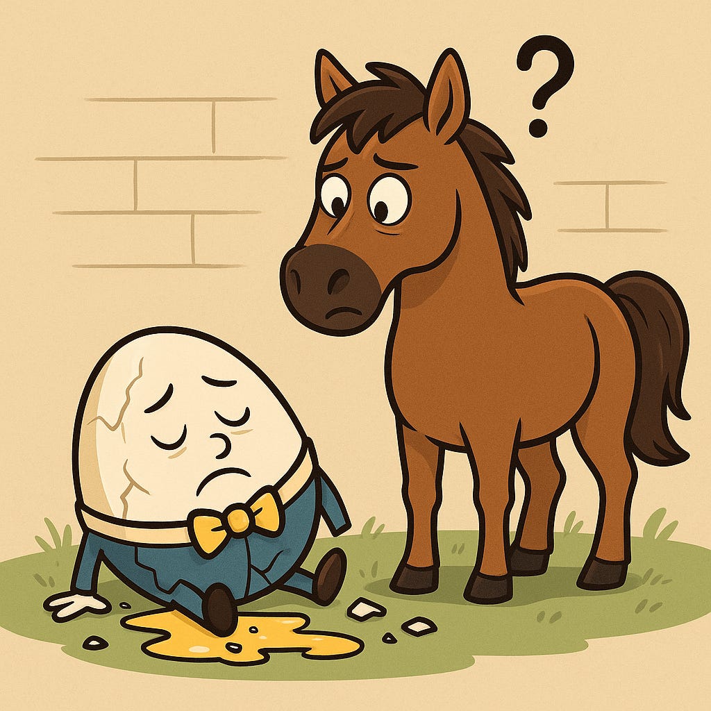 Do you remember Humpty Dumpty? He’s usually drawn as an egg who sat on a wall, had a great fall, and could never be put back together again. The funny thing is — the original 1797 version doesn’t even mention an egg. That image came later, when people treated the rhyme as a riddle. The “answer” was an egg, because once an egg falls, there’s no repairing it.